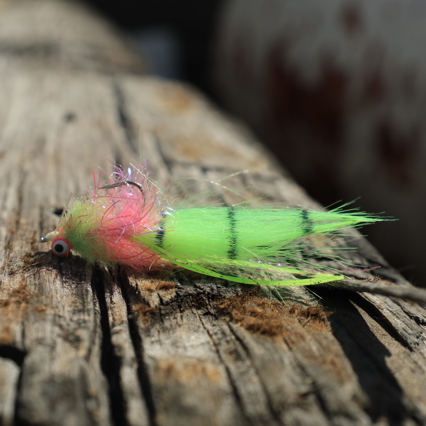 Tied by local tier Bryce Overholt of Over The Top Flies in Panama City Beach, this bright fly is one of our favorites for hooking reds in the Gulf surf. It’s built on a Gamakatsu SS15 #1 hook with small dumbbell eyes for the perfect weight. Plus, Bryce added a weed guard to keep grass off your fly and your cast clean.
